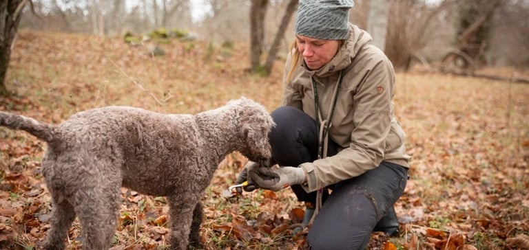 Boka härFå kunskap om tryffel i marken, tryffel i maten och hur tryffelhundar arbetar. Erfaren tryffeljägare och tryffelhund ingår!